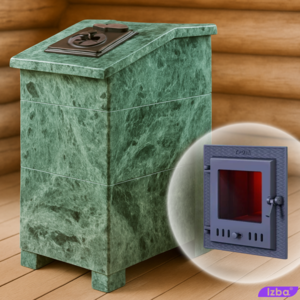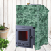 ✓ печи комплект с облицовкой: к топочному агрегату с чугунным коробом, увеличенной стартовой трубой добавляется набор плит из природного камня с креплениями для сборки облицовки и дверца для пара.